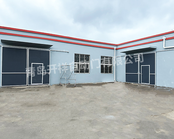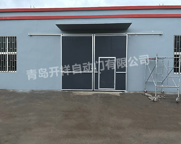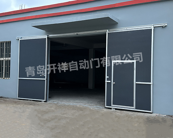 河南經濟款大墻灰顏色的鋁合金外框工業推拉門安裝完成